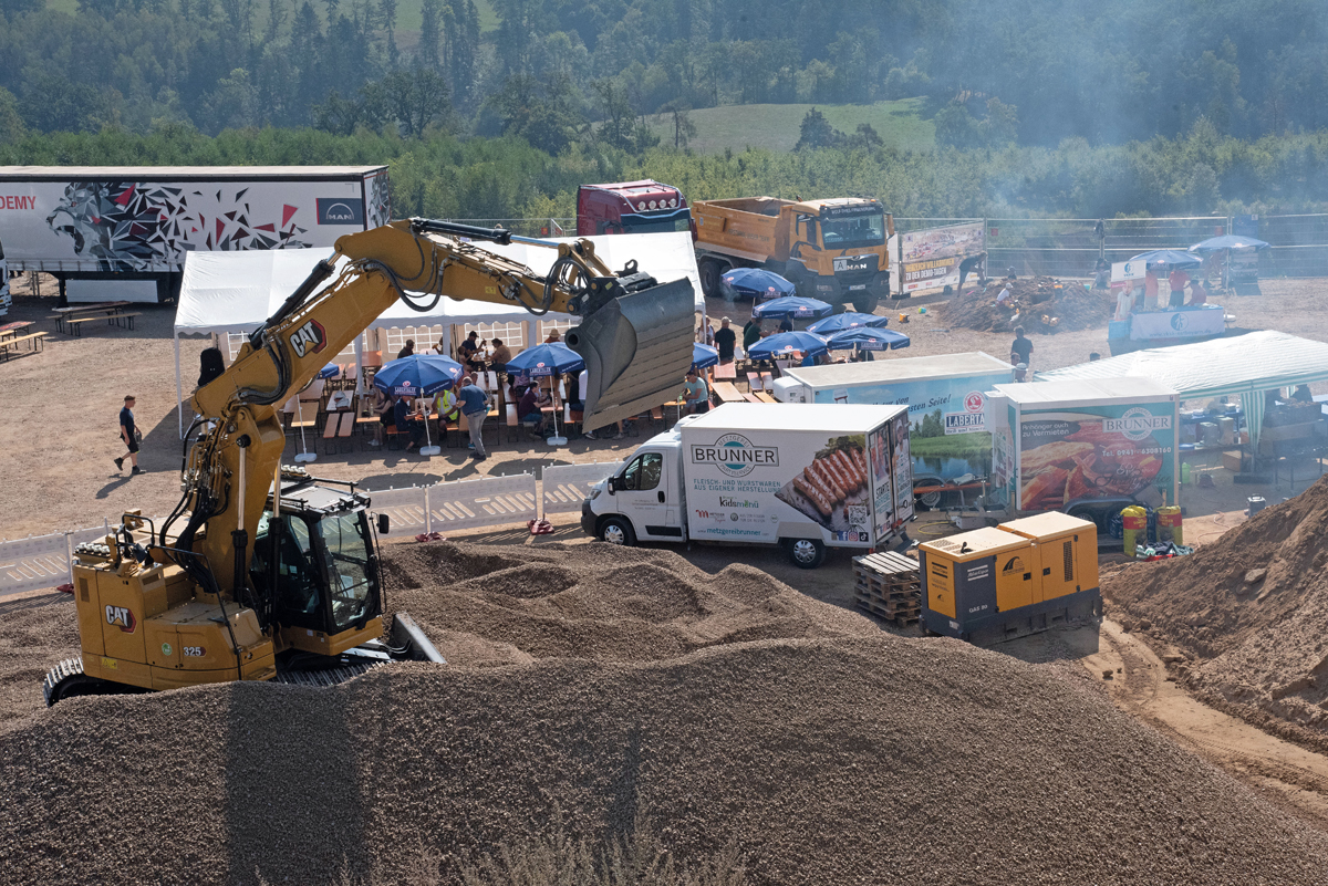 Die Demo-Tage im Schotterwerk der »Grube Ludwig« erwiesen sich als Familientreffen für alle, die in der Welt der Abbau- und Brechtechnik sowie in der Erdbewegung und im Tiefbau beheimatet sind. Bei strahlendem Sonnenschein trafen Aussteller wie Kölsch, Zeppelin-Baumaschinen, MAN sowie die Firmengruppe Wolf-Thies und Zeppelin Rental aufeinander, um einen Querschnitt ihrer aktuellen Lösungen in Live-Demos zu präsentieren – und das in gelungener Atmosphäre bei Bratwurst, Bier und Blaskapelle. Im Mittelpunkt standen allerdings eher die tonnenschweren Baumaschinen, Sieb- und Brechanlagen, Lkw sowie eine gute Portion an »Mitmach-Action«. Unter anderem durften sich die Besucher bei Zeppelin im Fahrer-Wettbewerb mit anderen Teilnehmern messen. Für Kölsch bot sich hingegen die Gelegenheit, seine aktuellen Brecher- und Siebanlagen vorzustellen. Und genau dafür hätte es letztlich keine bessere Bühne geben können.