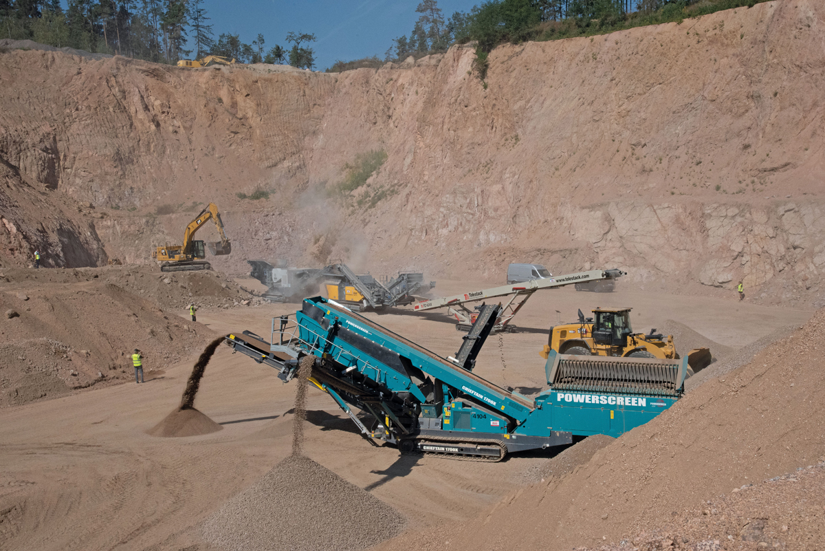 Im Zuge der Demo-Tage hat sich gezeigt, dass das Interesse an den vorgestellten Kölsch-Anlagen groß war. Lobende Worte fand Sean McCusker allen voran für die hohe Qualität der Gespräche: »Die Anwender und Kunden kommen gezielt in das Schotterwerk, um die arbeitenden Geräte zu sehen, wodurch weit intensivere Gespräche geführt werden als auf herkömmlichen Messen.« Es stehe schlichtweg mehr Zeit zur Verfügung, um auf die Fragen der Besucher einzugehen. Hinzu käme laut McCusker, dass die Grube Ludwig die ideale Location für eine solche Veranstaltung sei: »Die örtlichen Gegebenheiten sind perfekt. Die einzelnen Ebenen des Schotterwerks bieten ausreichend Platz für die im Einsatz befindlichen Maschinen.« Darüber hinaus spricht der Vorführort ein Einzugsgebiet an, das sich von der Oberpfalz über Niederbayern bis nach Mittel- und Oberfranken erstreckt. Einen großen Mehrwert sieht Sean McCusker im Übrigen im »Echt-Betrieb«: »Auf den Demo-Tagen können wir unsere Anlagen unter realen Arbeitsbedingungen zeigen, da bereits alles vor Ort ist. Für die Live-Vorführungen konnten wir Basalt als Aufgabematerial verwenden. Der Zug, bestehend aus RM J110X als Primärbrecher, dem RM 120X als Nachbrecher sowie dem Förderband TC424X, hat bis zu 420 t/h in Echtzeit produziert. Das gebrochene Material wurde anschließend über eine Chieftain 1700X-2Deck abgesiebt.«