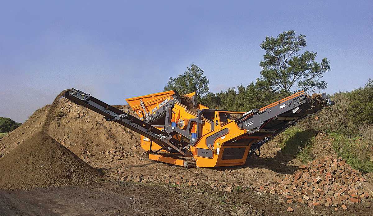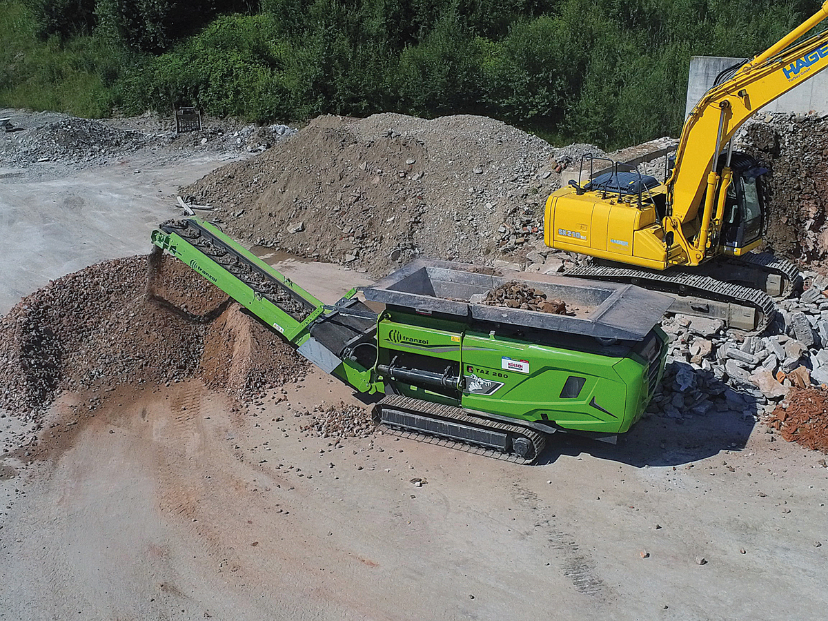Das Portafill-Schwerlastsieb MR5 ist als eine ideale Lösung konzipiert, wenn schwieriges Siebmaterial in großen Mengen klassiert werden soll. Es verbindet hohen Durchsatz – bis zu 200 t/h sind möglich – mit optimaler Transportfreundlichkeit. Über den 4 m³ großen Einfülltrichter passiert das Material das Fingersieb mit einer Spaltenbreite von 50 mm. Anschließend wird es über ein 1 000 mm breites Materialband dem zweifach gelagerten Siebkasten im Format 2 200 mm x 1 200 mm zugeführt. Dieser will mit kraftvollen und elliptischen Bewegungen für beeindruckenden Durchsatz auch bei extrem adhäsivem Aufgabematerial sorgen. Drei hydraulische Austragsbänder übernehmen die Produkthaldung. Eine Besonderheit ist das 2-in-1-Verfahren: Hier erfolgt auf Wunsch die Mischung von Überkorn- und Mittelkornfraktionen. Neu ist der geräuschreduzierte, 55 kW starke EU-Stufe-V-Dieselmotor von Deutz mit optimiertem Treibstoffverbrauch. Vor allem Recycling-Unternehmer, die ein kompaktes, hocheffizientes Sieb mit hohem Durchsatz bei kleinerer Siebfläche suchen, gleich ob für Kompost, Humus, Bauschutt oder Sand, sollten sich laut Kölsch für diese Lösung interessieren.