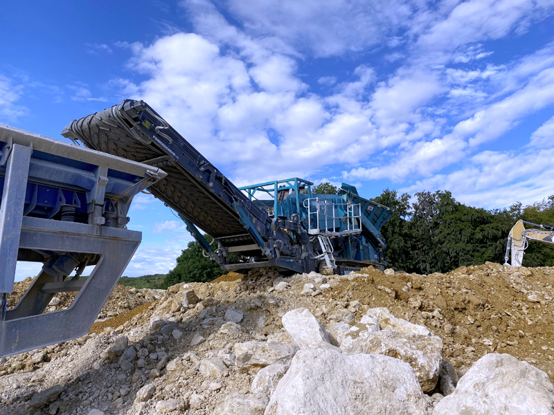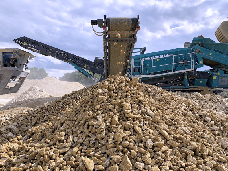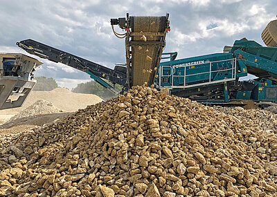 Die Warrior 2100 trennt in dieser Applikation Kalksteinblöcke von Lehmbestandteilen und Sand. Das Problem: Der Feuchtanteil des Lehms ist teilweise in den Kalkstein übergegangen. So entstanden teilweise extrem haltbare Verbindungen. Kein echtes Problem für den gewaltigen Punch, den dieses Schwerlastsieb bei Bedarf entwickelt.