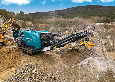So besticht die Warrior nicht nur in bindigem Material, sondern auch als Nachsiebmaschine im Steinbruch oder im Kompost. Trotz eines Gesamtgewichtes von 37 Tonnen lässt sie sich mittels Fernsteuerung einfach und präzise über die Baustelle manövrieren. Ausgehend von der Transportposition, mit u. a. eingeklappten Förder- und Austragsbändern, ist die Warrior 2100 in 20 Minuten einsatzbereit. Wie ihre kleine Schwester, die Warrior 1400X, ist sie mit der innovativen „Screen-Raise"-Funktion ausgestattet, die einen einfachen Siebwechsel ermöglicht. Ideales Aufgabematerial vorausgesetzt, realisiert die Warrior 2100 einen Materialdurchsatz von bis zu 700 t/h.