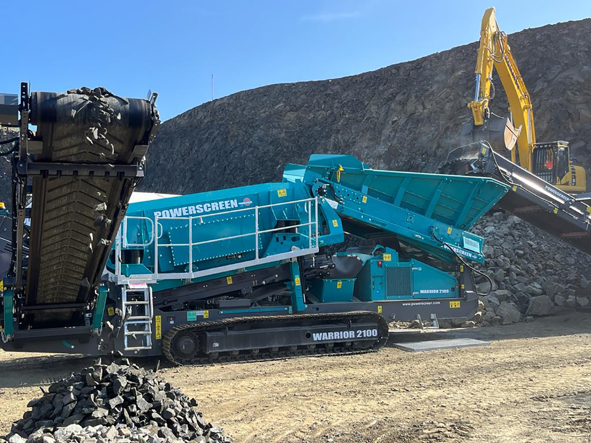 Ebenfalls von Powerscreen stammt der gezeigte Vorbrecher Premiertrak 400XR. Er steht für hohe Durchsatzleistung und Flexibilität, seine Brechkinematik sorge für Qualität und Quantität: Pro Stunde können bis zu 400 t durchgeschleust werden. Service und Wartung erleichtert das hydraulisch absenkbare Förderband.