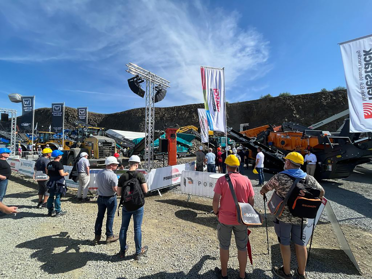 Mehr Effizienz in der Aufhaldung versprechen mobile Haldenbänder wie die des Herstellers Telestack. Ein Band wie das gezeigte LF520 könne bis zu 75 Prozent an Diesel- und Personalkosten einsparen, zudem erfolge das Aufsetzen von Halden materialschonend, ganz gleich, ob bei Bahnverladungen, im Hafenumschlag, in der Sand- und Kiesgrube oder auf Recyclingplätzen. Als weiteres Haldenband wurde auf der Steinexpo das Telestack Einstiegsmodell Origin C6000Tmit einer Bandlänge von 27 m präsentiert. Das kettenmobile Band ist überall dort in seinem Element, wo schnell und platzsparend gehaldet werden muss. Kompakt gebaut, mit klappbarem Aufgabe- und Kopfteil, sei es rasch verladen und am Einsatzort in 10 Minuten betriebsbereit.