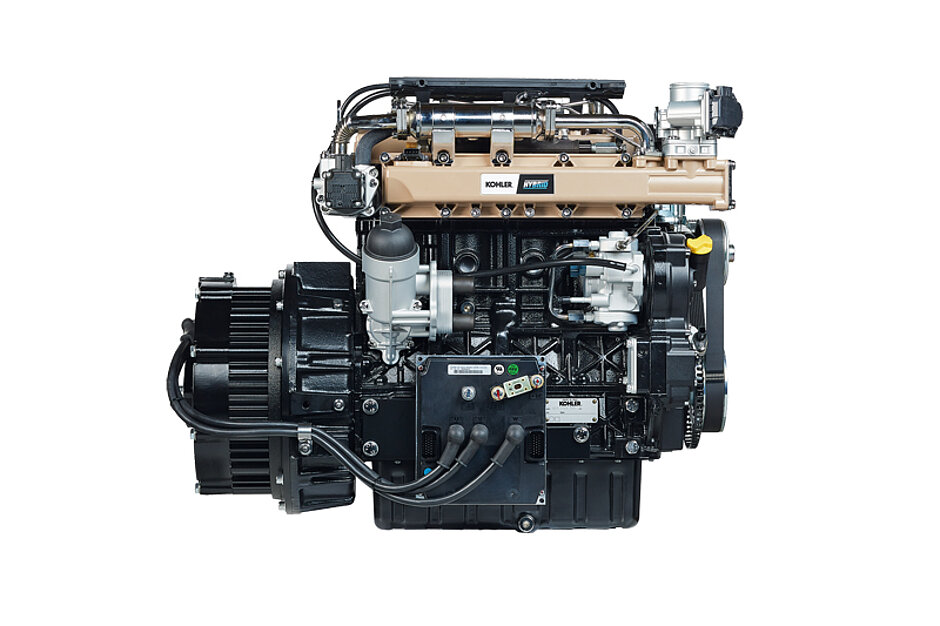 Die Stromerzeugung beim K-HEM erfolgt mit einer Kombination aus dem 18 kW (24,1 PS) starken Dieselmotor KDW 1003 und einem 48-V-Elektromotor. Der KDW 1003 erfüllt die Emissionsnormen der EU-Stufe V und benötigt keinen Dieselpartikelfilter. Der Elektromotor liefert eine Spitzenleistung von maximal 15 kW (20,1 PS) und eine Dauerleistung von 9 kW (12,1 PS). So kommt das K-HEM auf eine Gesamtleitung von mehr als 30 kW (40,2 PS), ohne dass dafür Abgasnachbehandlungssysteme erforderlich wären.
