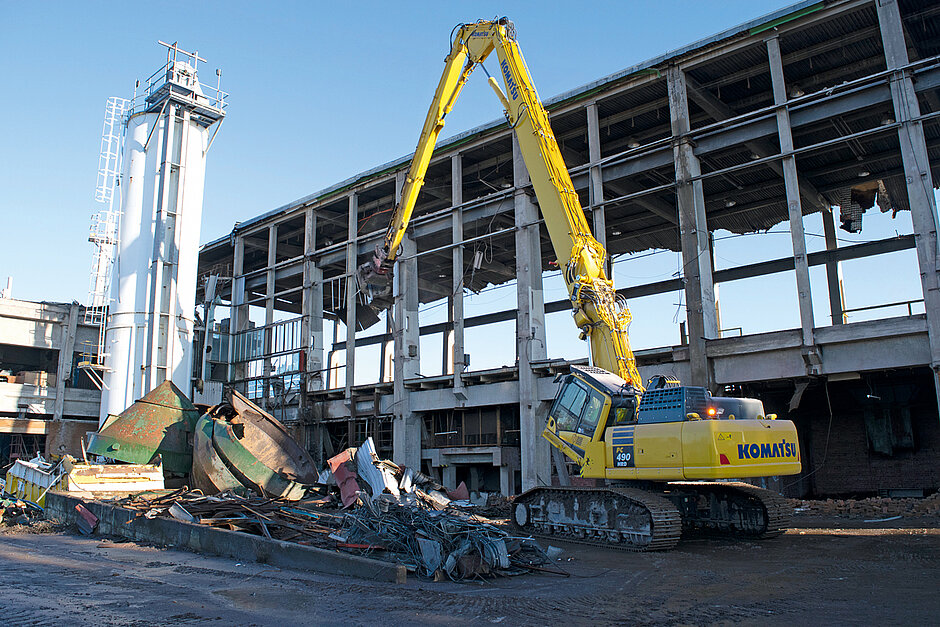 Der High-Reach-Ausleger kann für den Abbruch hoher Gebäudeteile genutzt werden. Ist diese Aufgabe erledigt, kann auf die Medium Reach-Konfiguration gewechselt und schwerere Abbruchwerkzeuge montiert werden. Am Ende der Arbeiten kann mit derselben Maschine und dem Erdbauausleger die Beladung von Lkw oder eines Brechers, den das Komatsu Produktprogramm ebenfalls beinhaltet, durchgeführt werden.