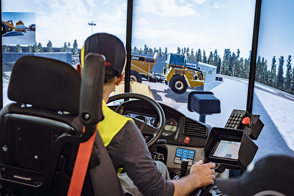 Für Neueinsteiger eignet sich das »Basistraining«. Komatsu-Experten schulen in der Bedienung von Radladern und Baggern in verschiedenen Aufgaben am Simulator und an den Maschinen. Ebenso werden die täglichen Wartungsaufgaben sowie der sichere und produktive Umgang mit der Maschine vermittelt.