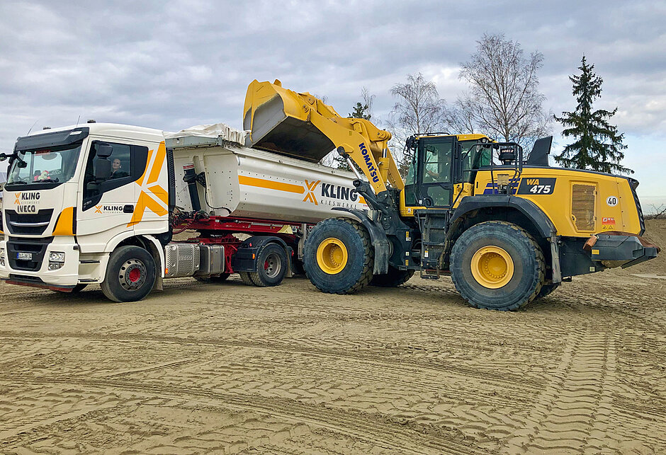 Überzeugt hat das neue Radladermodell durch Leistung, Verbrauch und dem neuen Antriebsstrang mit leistungsverzweigtem Getriebe. Das 25 t schwere Modell der nächsten Generation ist mit einem Motor gemäß EU-Stufe V sowie dem leistungsverzweigten Getriebe von Komatsu (KHMT) ausgerüstet. KHMT soll den WA475-10 noch leistungsstärker und kraftstoffeffizienter machen: Durch das variable Übersetzungsverhältnis arbeitet der Motor stets im Hocheffizienzbereich. Mit einer Kombination aus Kraftstoffeffizienz, Produktivität und einfacher Bedienung will sich der Radlader als perfekt geeignet für den Einsatz im Kieswerk von Kling erweisen. Auch arbeitet der WA475-10 mit einer um laut Hersteller bis zu 30 % höheren Kraftstoffeffizienz als die Vorgängermodelle.