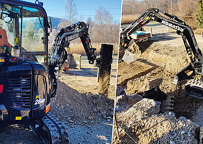 Die ab Werk integrierte intelligente Maschinensteuerung hat Komatsu bereits 2013 auf den Markt gebracht. In den drei Modellen PC210LCi‐11, PC290LCi‐11 und PC290NLCi‐11 kommen nun zahlreiche neue intelligente Funktionen hinzu. Eine neue automatische Schwenklöffelsteuerung vereinfacht Einsätze an Böschungen und Gräben, indem sie automatisch ein Untergraben verhindert und bei jedem Durchgang für einen optimal gefüllten Löffel sorgt. Der Schwenkwinkel des Löffels wird automatisch dem Zielprofil angepasst.
