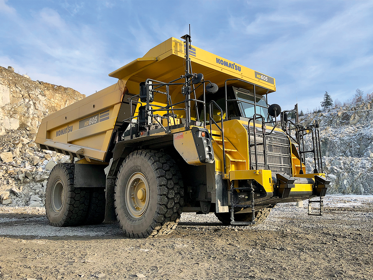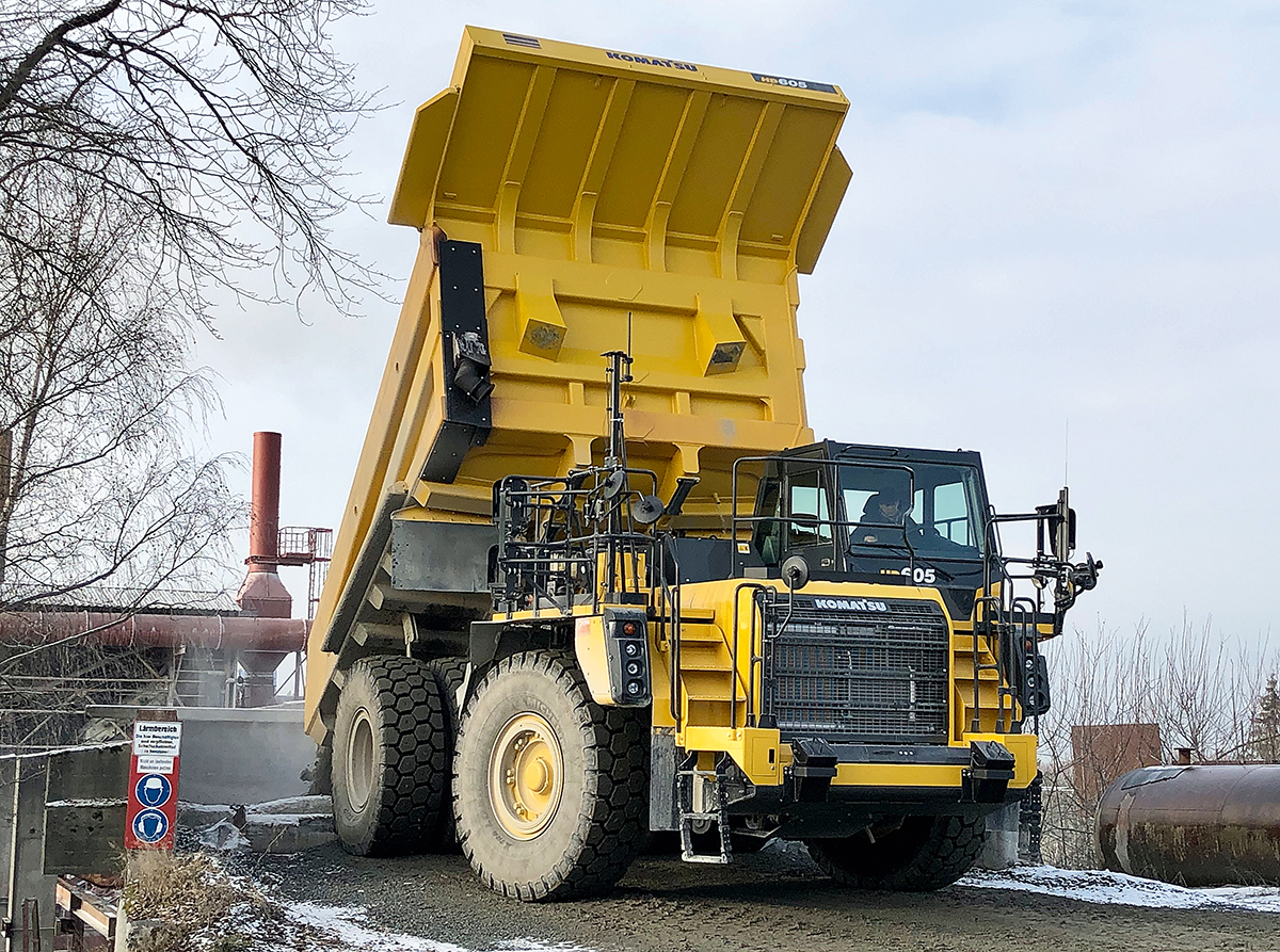 Für das Werk Hötzelsberg wurde der neue Muldenkipper HD605-8 beschafft. Er zeichnet sich laut Hersteller durch einen kraftstoffsparenden Antriebsstrang und den kleinsten Wenderadius in dieser Klasse aus. Neben hohem Fahrerkomfort bietet er auch einen großen LCD-Bedienungsmonitor und erfüllt, wie Komatsu unterstreicht, höchste Sicherheitsstandards für die Fahrer. In Hötzelsberg wird der HD605-8 für den Transport des gesprengten Materials aus dem Steinbruch zum Vorbrecher eingesetzt. Da es sich hier um relativ steiles Gelände handelt, schätzt der Muldenkipperstammfahrer Siegfried Drasch die automatische Retarder-Kontrolle. In Verbindung mit einer Geschwindigkeitsvoreinstellung vereinfacht sie das Fahren von Gefällestrecken deutlich und wirkt dem Überhitzen der Bremsen entgegen.