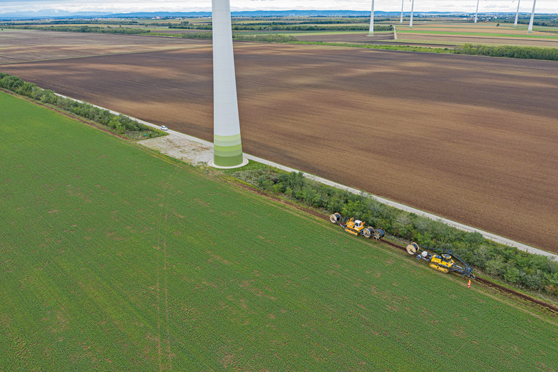 Leyrer + Graf ist von einem hydrostatischen Antrieb auf eine Raupe umgestiegen, die durch einen Wandler angetrieben wird, weil durch die neue Technik bessere Pflugergebnisse sowie eine erhöhte Traktion erwartet werden. »Durch das aufgebaute Vermessungsgerät am Pflug kann bereits während der Pflugarbeiten die genaue Lage und Tiefe der verlegten Medien aufgezeichnet werden. Diese kombinierten Arbeitsschritte bringen uns und vor allem unseren Kunden einen großen Mehrwert«, so Preiser.