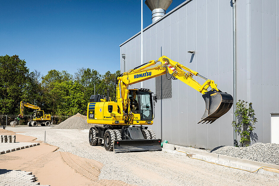 Das gilt auch für den Mobilbagger PW158-11. »Das ist für uns eine sehr besondere Maschine«, so Ingo Büscher weiter. »Wir haben den PW158-11 in Zusammenarbeit mit unseren Distributoren für den europäischen Markt in Rekordzeit komplett neu entwickelt und die Absatzzahlen im Vergleich zum Vorgängermodell mehr als verdoppeln können.« Aufgrund der kompakten Abmessungen dank des geringen Heckschwenkradius’ von lediglich 1 900 mm sei dieser 16 t schwere Kurzheckbagger vor allem für den Einsatz auf räumlich begrenzten, innerstädtischen Baustellen ausgelegt und ermögliche mit seinen großen Hubkräften in allen Positionen eine hohe Produktivität. »Mit dem PW158-11 haben wir den Nerv bei unseren Kunden absolut getroffen.«