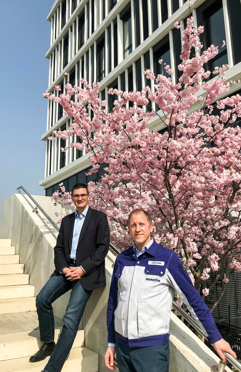Dass Corona im vergangenen Jahr auch bei Komatsu Germany zu Beginn für Irritationen und bei den Kunden zu einer »enormen Verunsicherung« sowie in der Folge zu einem Rückgang bei den Maschinenauslieferungen geführt hat, haben Marco Maschke und Ingo Büscher schon so gut wie abgehakt. »Die Folgen der Pandemie waren wesentlich geringer für uns als beispielsweise nach der Finanzkrise«, betonten sie. So habe man wegen Corona das Werk nicht geschlossen, sondern nur zeitweise auf eine Drei-Tage-Woche umgestellt. Keinerlei Einschränkungen habe es bei den fünf deutschen Komatsu-Distributoren in den Bereichen Service, Verkauf und Beratung gegeben. »Wie andere Hersteller auch, haben wir sehr davon profitiert, dass die Bauaktivitäten in Deutschland, im Gegensatz zu anderen Ländern in Europa, wegen Corona so gut wie nicht eingeschränkt waren und nahezu normal auf den Baustellen gearbeitet wurde.«