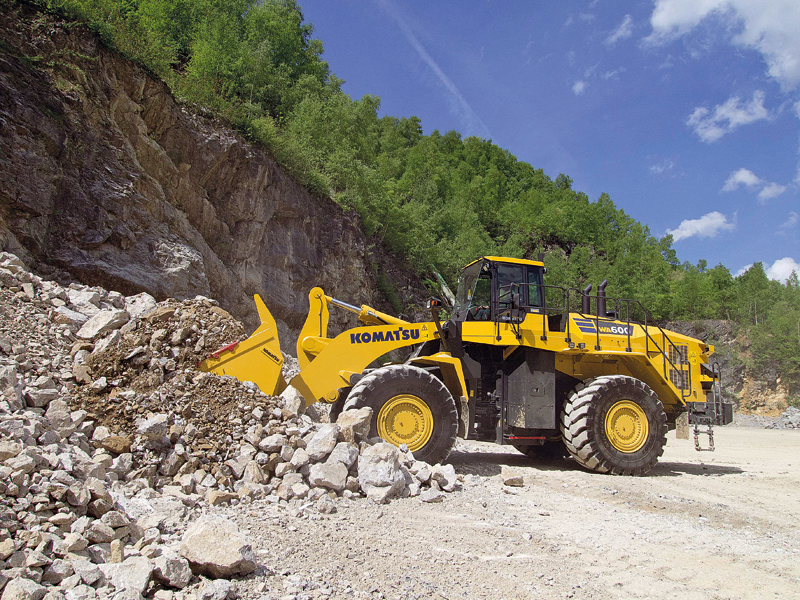 Zu den in der Live-Demo auf der Steinexpo gezeigten Komatsu-Maschinen wie dem Radlader WA600-8, dem Muldenkipper HD605-8 und HM300-5 und dem Großbagger PC700LC-11 fehlt noch eine kleine wendige Arbeitsmaschine für den vielfältigen Einsatz – Komatsu wirft deshalb auch noch den Kompaktradlader WA80M-7 in den Ring, der mit verschiedenen Anbaugeräten überall nützliche Arbeiten leistet. Für die Rückverladung bietet sich zudem der Radlader WA500-8 an, der mit seiner Kombination aus Standfestigkeit, Losbrech- und Zugkraft für jede Art von Materialtransport, -umschlag und Verladeeinsatz geeignet ist.