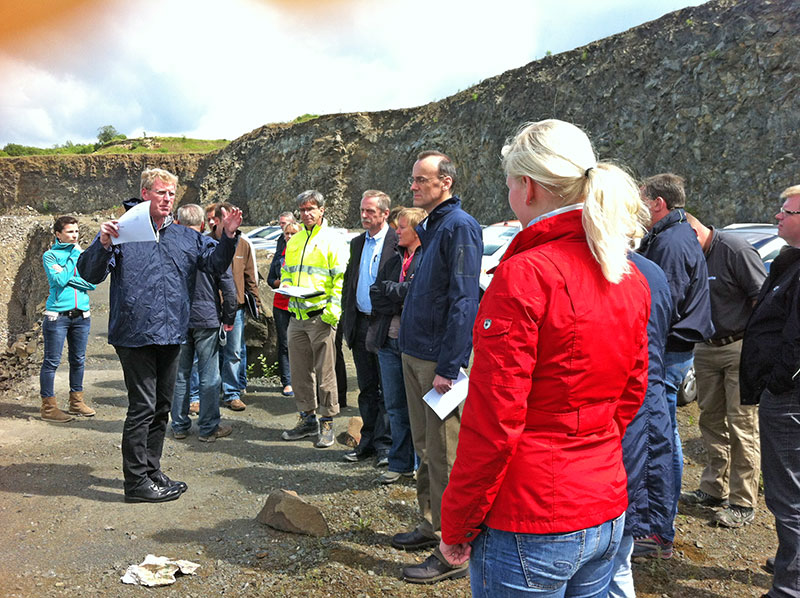 Die Ausstellungsflächen haben sich durch den fortschreitenden Gesteinsabbau und die Erweiterung der innerbetrieblichen Deponie in Europas größtem Basaltsteinbruch erheblich verändert. Das Geoplan-Messeteam führte deshalb im Sommer Präsentationstermine vor Ort durch, um die Flächen-Konzeption der Steinexpo 2014 vorzustellen.