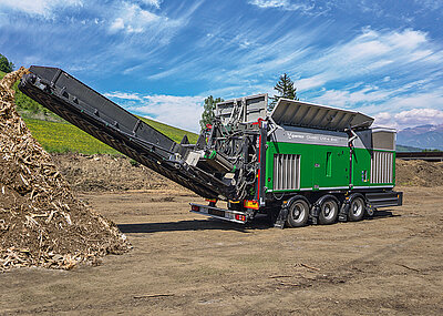 Ist mit massiven Störstoffen zu rechnen, empfiehlt Komptech das optionale klappbare und in unterschiedlichen Weiten verfügbare Bunkervorsieb. In Erprobung befindet sich bei Komptech die Option »Vibrosieb«, die vor allem bei bindigem Material die Auftrennung in der Vorsiebung entscheidend verbessern soll. Ein PU-Abstreifer am Feinkornband und Abdichtungen für Sammelband und Überkornband minimieren Leckagen und gegen unerwünschtes Zurückrollen von Steinen am Überkornband helfen die regelbare Bandgeschwindigkeit und die seitlichen Aufsätze am Abwurfband.