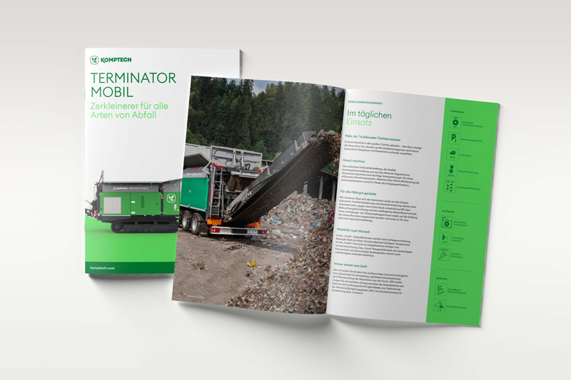 Diese Neupositionierung ist natürlich auch im Design sichtbar. Dabei steht insbesondere die Optimierung der Marke Komptech für die digitale Nutzung im Fokus. Durch die grafische Weiterentwicklung des Logos, der Schriften und des Farbkonzepts sollte unsere Vorreiterrolle im Bereich der Digitalisierung sichtbarer werden. Natürlich bedeutet diese Änderung auch neue Prospekte, eine Überarbeitung des Social Media Auftritts und eine neue Website, die durch frische Farben, ein modernes Design und starke Geschichten unsere Expertise für Kunden und Kundinnen klar zum Ausdruck bringen.