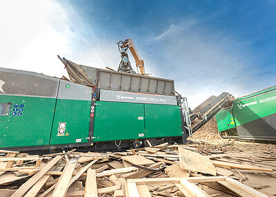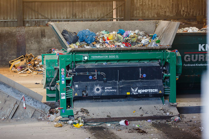Sofort nachdem das fahrerlose Müllfahrzeug seinen Inhalt in den Aufgabebunker entleert hat, erfassen Sensoren die Qualität des Abfalls. „Heizwertreicher Gewerbeabfall“ meldet der Hauptcomputer an den Vorzerkleinerer. Noch bevor der erste Abfall in den Zerkleinerungsraum des Terminators gelangt, adjustieren sich Schnittspalt und Walzendrehzahl selbsttätig für ein optimales Zerkleinerungsergebnis. Auch die nachgeschaltete Sieb- und Separationstechnik weiß, was auf sie zukommt. Abhängig von der Zusammensetzung des Abfalls schalten sich Siebe und Sichter, Metallabscheider sowie IR-basierende Sortiermaschinen und Sortierroboter an und ab. Später, wenn die Anlage im automatisierten Wartungszyklus ist, wird Bilanz gezogen: Erzeugte Sekundärrohstoffe sichern die Wirtschaftlichkeit der einzelnen Anlage, Einsparungen von Ressourcen und CO2-Reduktion durch effizienten Energieeinsatz helfen uns allen.