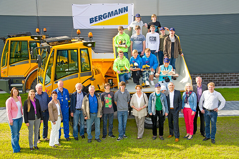 Basteln und Werken stehen in Zeiten von Internet, Play-Station und multimedialen Unterhaltungsangeboten bei Jugendlichen heute als Hobbys nicht hoch im Kurs. Auch die Verantwortlichen der Martinischule und Realschule Haren sowie der Meppener Anne-Frank-Schule haben bei ihren Schülern über die Jahre ein verändertes Freizeitverhalten beobachtet – und sich entschlossen, im Sinne der späteren Berufsorientierung ihrer Schüler aktiv gegenzusteuern. Vor diesem Hintergrund entstand ein Projekt des Unternehmens Bergmann und der Harener und Meppener Schulen, in dem Jugendliche als »Konstrukteure von morgen« seit Februar Modelle der Bergmann-Dumper 3009 und 3012 fertigen. Im Maßstab 1:20 bzw. 1:15 und aus anspruchsvollen Materialien wie Aluminium, Kunststoff und Holz bauen die Schüler realistische Dumper-Modelle, die später zu Werbezwecken eingesetzt werden sollen. Einige der Bauteile, die von den Projektteilnehmern weiterverarbeitet werden, fertigen behinderte Menschen in den Werkstätten des St.-Vitus-Werks Meppen vor. Mitte Juni war es so weit: Bei einem Termin im Unternehmen Bergmann lieferten Schüler der Anne-Frank-Schule Meppen und der Martinischule Haren die ersten fertiggestellten Modelle aus.