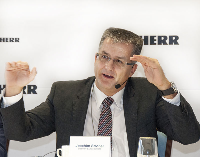 Als Hersteller technisch hoch entwickelter und qualitativ hochwertiger Premium-Produkte habe Liebherr, so Strobel, vor allem in den mittleren und oberen Gewichtsklassen der Erdbewegungsmaschinen eine starke Position in den Märkten Mitteleuropas. Darüber hinaus sei man weltweit in einer führenden Position in vielen Spezialanwendungen – wie mit Abriss-, Tunnel- oder Zweiwegebaggern sowie Tunnelradladern oder der breiten Palette von Materialumschlagmaschinen. Um diese Position zu behaupten und vor allem um den Kunden in diesen Märkten weiterhin einen Technologie-Vorsprung bieten zu können, habe Liebherr seine Kapazitäten in den vergangenen Jahren sehr stark auf die Umsetzung der neuen Abgasrichtlinien in Verbindung mit einer nahezu kompletten Neuentwicklung der Produktpalette gebündelt.