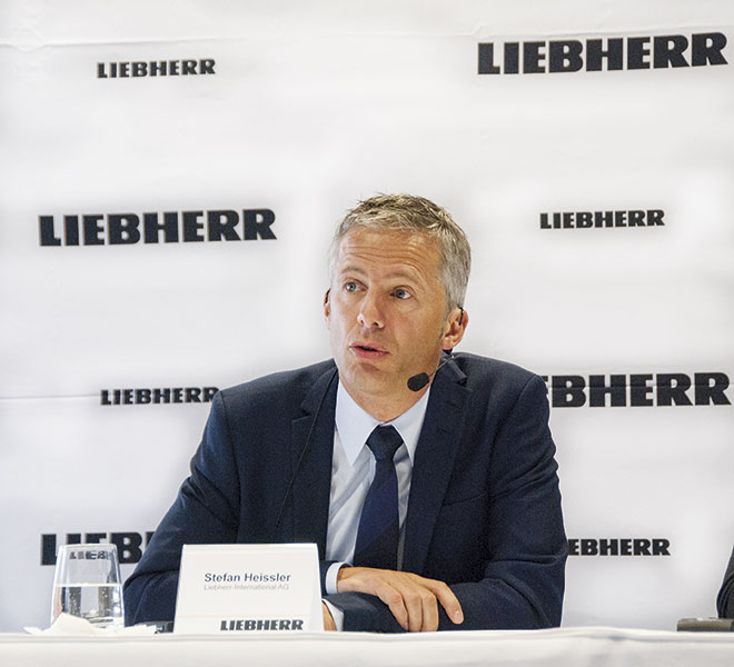 Zum Jahresende rechnet man bei Liebherr mit einem Gesamtumsatz von 8,982 Mrd. Euro, der damit auf dem Niveau des Vorjahres (9,964 Mrd. Euro) liegen würde, so Stefan Heissler. Dabei erwartet man einen geringfügigen Rückgang im Bereich Baumaschinen und Mining. »Da sich die weltweite Gewinnungsindustrie nach wie vor in einer schwierigen Situation befindet, wird dies auch weiterhin den Umsatz der Sparte Mining beeinträchtigen«, so Heissler. »In den Sparten außerhalb von Baumaschinen und Mining gehen wir insgesamt von einem Plus aus. Steigerungen erwarten wir insbesondere in der Sparte Maritime Krane und bei den sonstigen Erzeugnissen und Leistungen. Die positive Entwicklung der ersten Jahreshälfte wird sich dort voraussichtlich fortsetzen.«