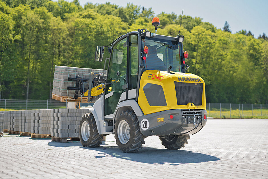Mit ihren Maßen zeigen sich die beiden Kramer-Radlader geradezu prädestiniert für niedrige Durchfahrtshöhen und enge Passagen. Dank einer Breite von lediglich 1,26 m sind auch Fahrten auf einem Gehweg möglich. Zudem sind die Maschinen dank des geringen Transportgewichts auf einem Pkw-Anhänger transportierbar.