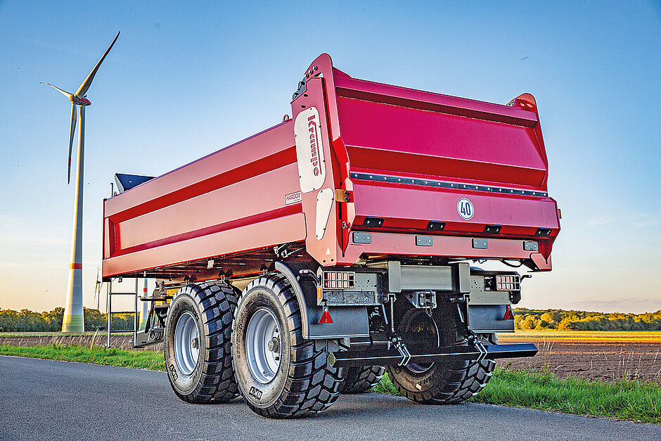 Den Benutzern der eigenen Produkte die Arbeit zu erleichtern, ist das Ziel der Krampe-Techniker. Um das Fahrverhalten gerade bei großen Kippern zu optimieren und den Aufwand beim Anhängen zu reduzieren, setzt der Hersteller nun auf das deichselgeberlose Lenksystem von ME Mobil Elektronik.