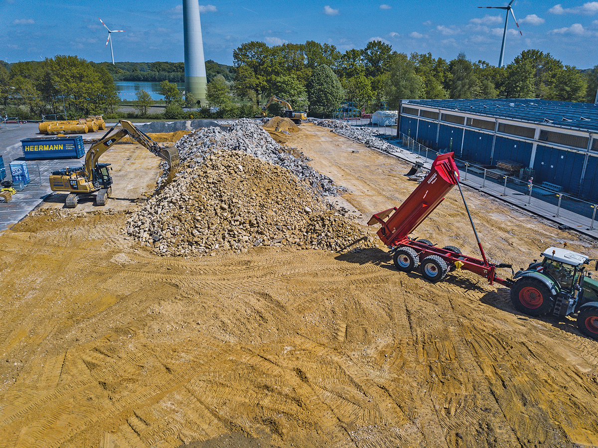 Die neue Produktionshalle ist ca. 3 600 m2 groß. Davon dienen 700 m2 als Lagerfläche für die direkte Wareneingangs- sowie Qualitätskontrolle und Vorkommissionierung. Darüber hinaus gibt es hier auch Meisterbüros und Sozialbereiche. Nach der Fertigstellung wird der Wannenbau komplett in die neue Fertigungshalle umziehen. Der Schweißroboter wird nach dem Umzug in die neue Halle in Länge und Höhe so erweitert, dass nicht mehr nur Erdbaumulden, sondern auch BigBody-Wannen geschweißt werden können. Neben dem Schweißroboter gibt es aber nach wie vor auch Einzelarbeitsplätze für den manuellen Sonderbau, der Krampe auszeichnet.