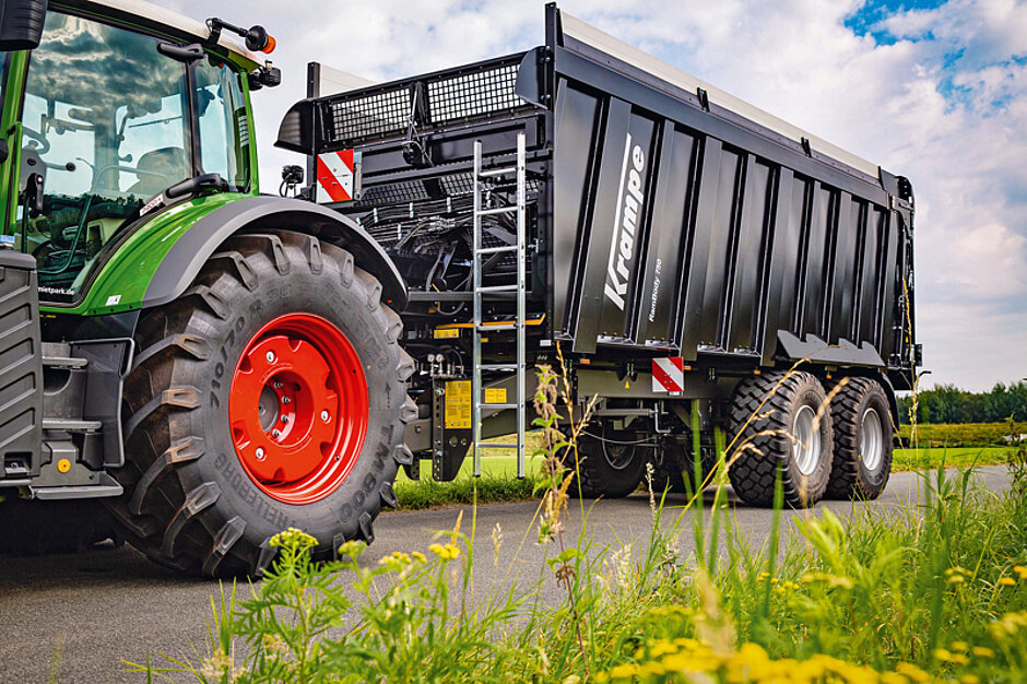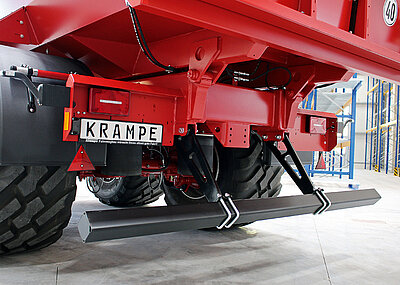 Vor mehr als 35 Jahren hat Krampe die ersten Anhänger hergestellt. Nach Anfragen von Kunden und Händlern hat der westfälische Fahrzeugbauer nun mit dem »RamBody AS 750« seinen ersten Abschieber in das Programm aufgenommen – zunächst als Tandemanhänger mit einem Ladevolumen von 41,1 m³. Neben der serienmäßigen Parabelfederung bzw. einem Fahrwerk mit hydraulischem Achsausgleich empfiehlt Krampe das bewährte luftgefederte Fahrwerk. Als Alleinstellungsmerkmal werden hier BPW-Lenkachsen mit obenliegenden Bremszylindern verbaut, die eine große Bodenfreiheit garantieren. Der Aufbau wurde in Jet-Bauweise durchgeführt, mit engen, leicht schräg angesetzten Rungen. Die seitlichen Bordwände sind geschraubt und können demontiert werden. Die gekanteten Außenrungen sollen für eine extreme Stabilität des Aufbaus und für eine gediegene Optik sorgen. Die schlanke Ausführung von Bordwänden und Heckklappe ermöglicht eine große Laderaumbreite und somit ein hohes Transportvolumen. Um Ablagerungsstellen weitestgehend zu vermeiden, wurden alle Kantungen als Schräge ausgeführt. t