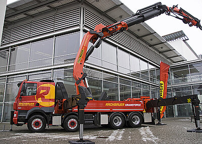 Der Kranhändler und -vermieter präsentierte nicht nur Produkte, sondern übergab auch zwei Unic-Krane an die Firma Hellmich.