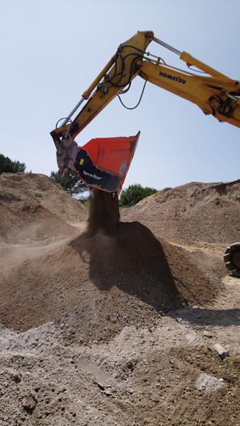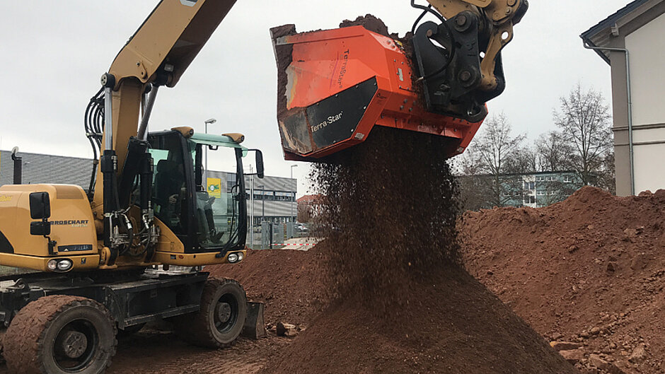 Mit der Terra-Star-Serie sind eine Vielzahl von Korngrößen beim Absieben möglich, von sehr fein bis grob, beispielsweise bei Verfüllmaterial oder bei grober Trennung von Baumischabfällen beim Abbruch. Mit der neuesten Wellenentwicklung kann auf die Korngröße 0/5 mm abgesiebt werden. Diese Welle kommt insbesondere bei der Rückverfüllung von Gräben für Versorgungsleitungen wie Gas und Wasser zum Einsatz. Mit dem gleichen Gerät können auf der nächsten Baustelle Böden verbessert, sprich mit Kalk gemischt werden, um so Verdichtbarkeit zu gewährleisten.
