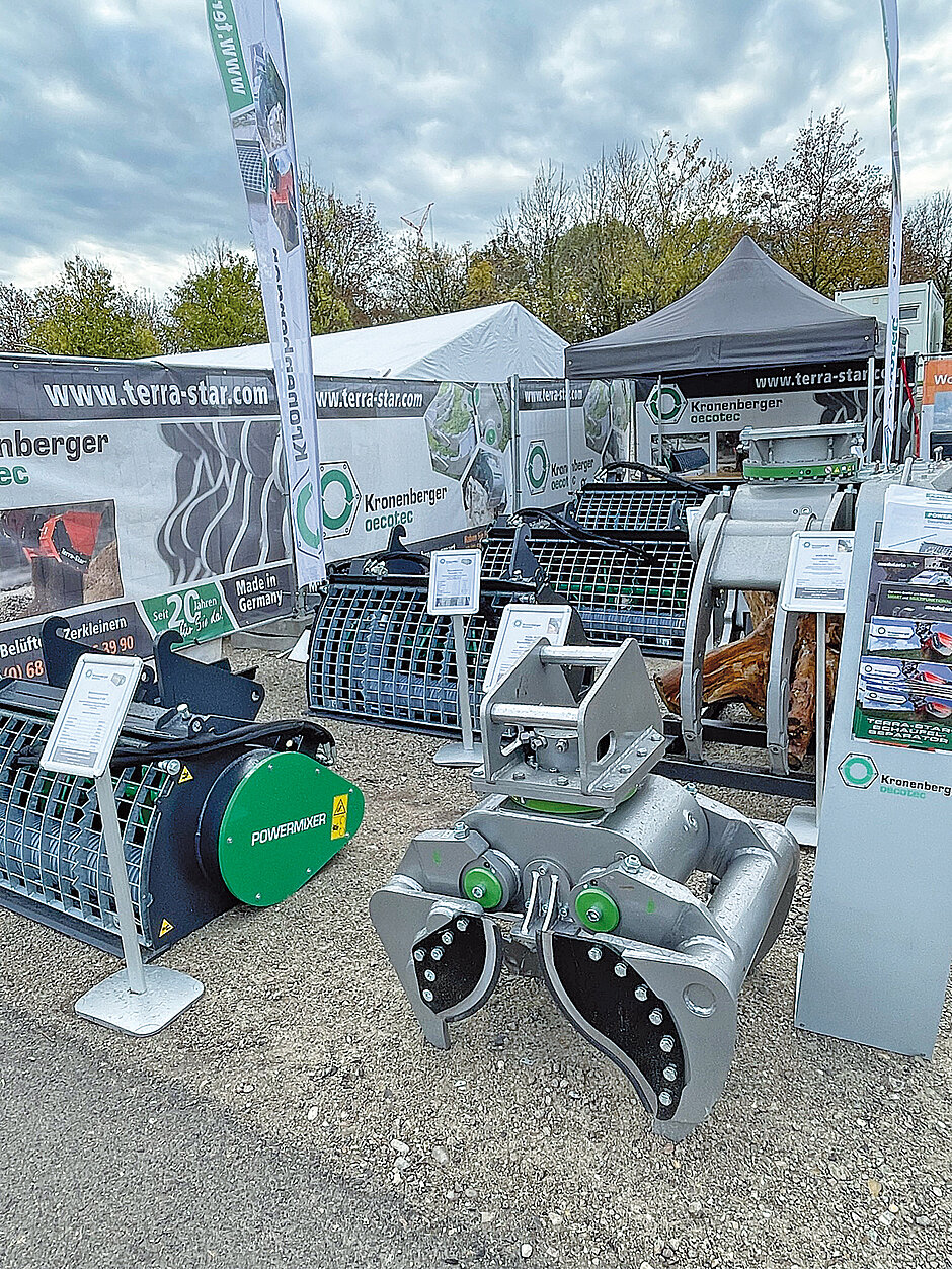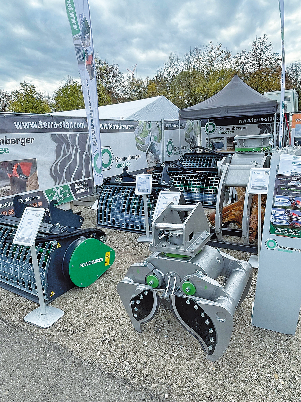 Neben der Vorstellung des Modularis-Greifers nutzte Kronenberger Oecotec die Bauma ebenso, um u. a. die Produktreihe seiner Powermixer-Betonmischschaufeln und den Schaufelseparator Terra-Star vorzustellen. t