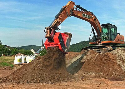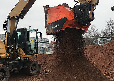 Bei Erschließungsmaßnahmen ärgerte sich Carsten Balan häufig über immer teurer werdende Deponiekosten, die einen erheblichen Kostenfaktor darstellten, regelmäßig zu Diskussionen mit dem Bauherren führten oder die Kalkulation verhagelten. »Früher haben wir zwar auch schon versucht, durch das Absieben von Aushubmaterial Deponiekosten einzusparen. Beim Einsatz unseres mechanischen Sieblöffels dauerte das Absieben aber eine gefühlte Ewigkeit und unsere Baggerfahrer wurden heftig durchgeschüttelt«, sagt Carsten Balan. Seit man den Terra-Star von Kronenberger Oecotec einsetze, müsse er niemanden mehr zum Absieben überreden. »Die Zeitersparnis ist enorm und die Arbeitsbedingungen haben sich mit dem Terra-Star erheblich verbessert.«