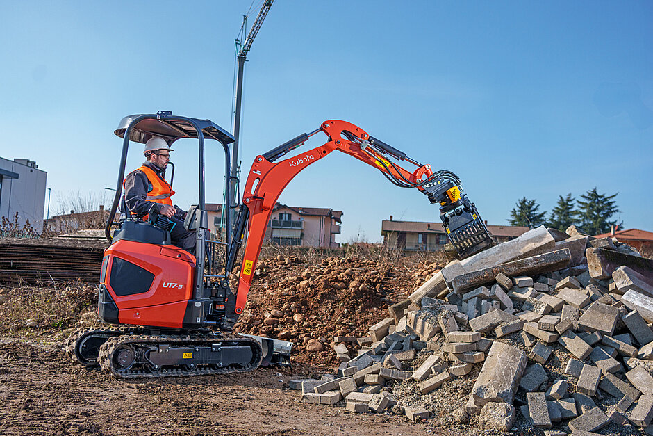 Ebenfalls neu ist der Kurzheckbagger »U18-5«, der über einen langen Löffelstiel verfügt. Im Vergleich zum Vorgängermodell »U17-3a« ist dieser um 67 kg schwerer geworden. Trotz des leicht verlängerten Hecks (30 mm) bleibt er ein Kurzheckbagger mit hoher Stabilität und Flexibilität und eignet sich somit auch für den Einsatz auf den immer enger werdenden Baustellen. Die neuen Kubota-Modelle »U17-5« und »U18-5« verkörpern aus Sicht von Kubota das Engagement und den Willen, Maschinen zu liefern, die die Anwender auch in Zukunft im täglichen Einsatz überzeugen. Durch die Kombination eines leistungsstarken Motors mit einem effizienten Hydrauliksystem, was auf dem neuesten Stand der Technik ist, bietet der Hersteller nach eigener Aussage »eine perfekte Balance zwischen Kraft und Präzision«.d
