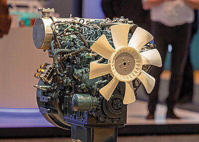 Saubere Leistung bei minimierten Ausfallzeiten verspricht Kubota hingegen beim 1,7 t LPG-Minibagger KX019-4. Angetrieben von dem hauseigenen Flüssiggasmotor WG972-L-E4 sollen niedrige Emissionswerte, hohe Produktivität und ein geringer Geräuschpegel aufeinander treffen. Die Leistung beträgt 14,5 kW (bauMAGAZIN 3/22, Seite 20). Weit weniger Schadstoffe als vergleichbare Benzin- oder Dieselmotoren sollen hier ebenfalls ausschlaggebend für die Modellentwicklung gewesen sein. Serienmäßig verfügt der Minibagger über einen Zusatzsteuerkreis, was die einfache Steuerung des proportionalen, konstanten und maximalen Öldurchflusses ermöglicht. Die maximale Hydraulikölmenge des zusätzlichen Steuerkreises beträgt 27,7 l/min. Bei der maximalen Grabtiefe kommt der Bagger in Standardausführung auf 2 580 mm – die Reichweite liegt bei 4 120 mm, während die Grabkraft am Arm 7,8 kN beträgt.