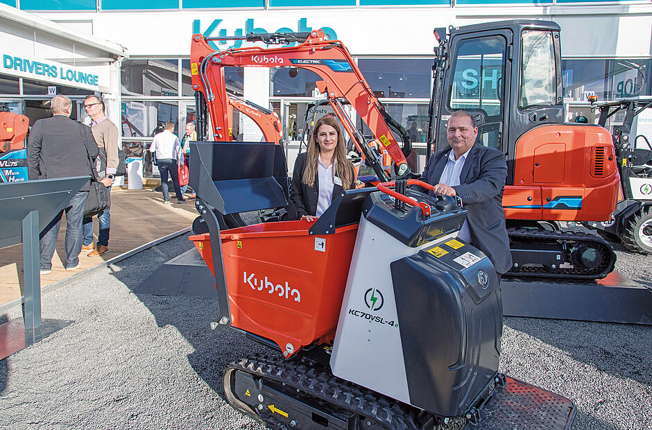 Um elektrifizierte Maschinen im wahrsten Sinne »auf die Kette zu kriegen«, hat Kubota tief in die Entwicklerschublade gegriffen und dem Bauma-Publikum interessante Neumaschinen geboten. Produkt-Manager Joachim Stein und seine Kollegin Ozlem Cetin haben die bauMAGAZIN-Redaktion auf einem Rundgang begleitet und insbesondere auf den neu konzipierten Elektrobagger U36-4e hingewiesen, der als »Smart Energy Solution« einen wichtigen Beitrag zu einer emissionsfreien Zukunft leisten soll.