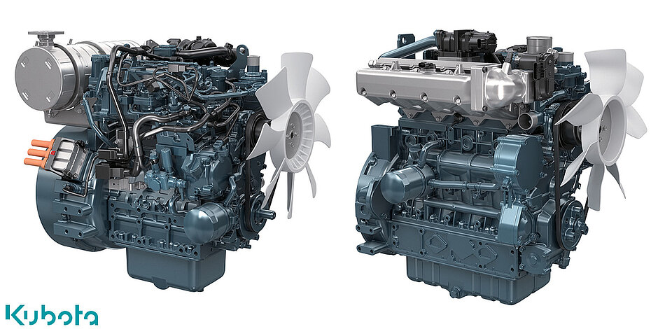 Ab März 2023 werden drei Hybrid-Systeme von Kubota im Markt vorgestellt - der neue D1803-CR-T P1 Hybrid, der D1105 P2 Hybrid und der V3307 P0 Micro-Hybrid.