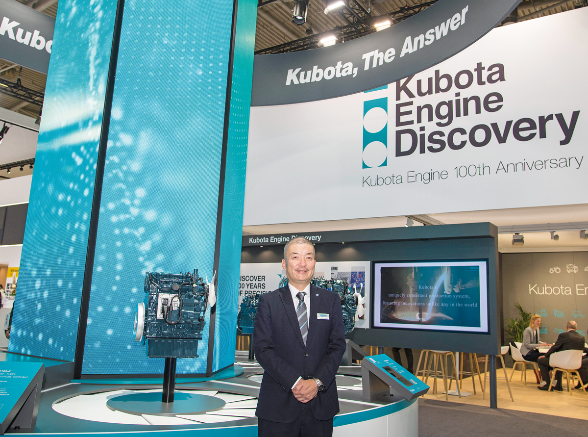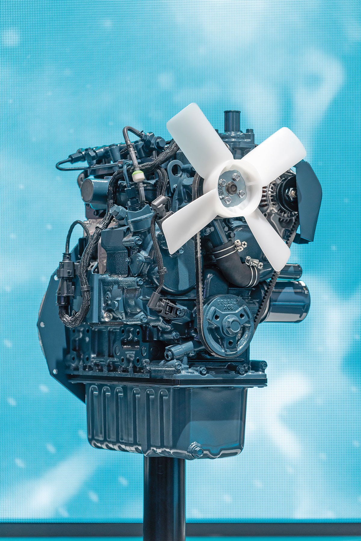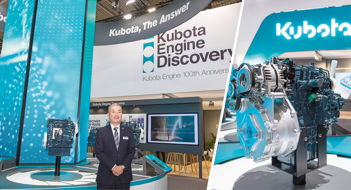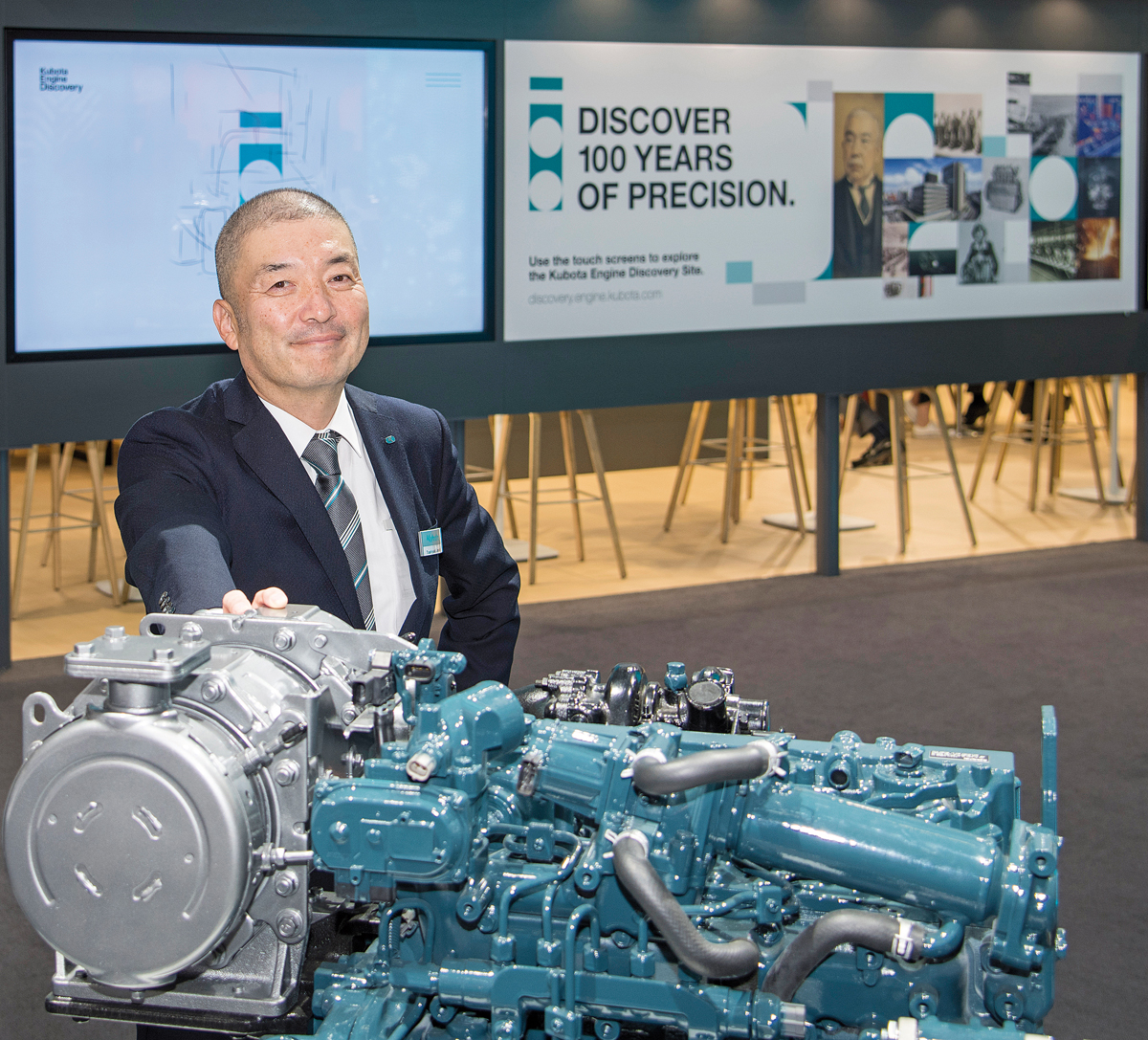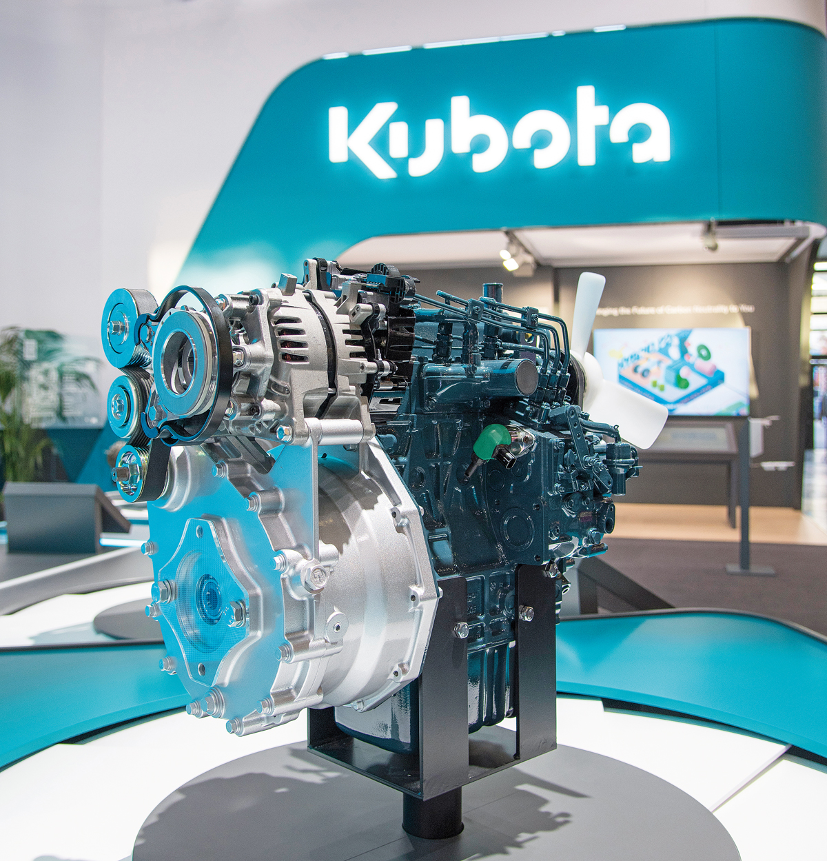 Die gesteckten Ziele sind klar – und doch weiß Kubota, dass der Weg dorthin mit langwieriger Entwicklungsarbeit gepflastert ist. Die Bauma hat jedoch gezeigt, dass Kubota ein starkes Tempo vorgibt und beispielsweise mit einem Micro-Hybrid-Motor sowie einem Wasserstoffmotor auf sich aufmerksam macht, der für industrielle Anwendungen entwickelt wurde. Gleichwohl setzte Kubota auf bewährte Technologie: Unter anderem zeigte der Motorenspezialist mit dem D1105-K einen elektronisch geregelten Dieselmotor, der nun erstmals in München ausgestellt wurde.