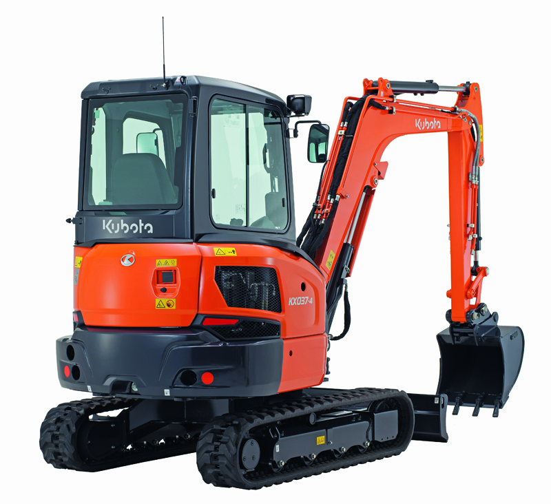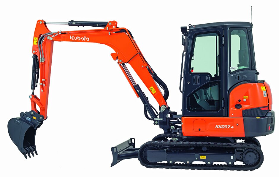 Optional ist für die Maschine auch eine Klimaanlage erhältlich. Ein gut lesbares LCD-Display im vorderen, rechten Sichtbereich der Kabine ermöglicht dem Fahrer eine einfache Überwachung des aktuellen Maschinenstatus’. Angetrieben wird der KX037-4 von einem Kubota-Dieselmotor (Stage V) mit 17,8 kW (24,2 PS) bei 2 200 min⁻¹. Der neue Bagger ist mit einem automatischen Drehzahlregelsystem ausgestattet, das die Betriebskosten signifikant reduzieren und die Lebensdauer des Motors deutlich erhöhen soll.