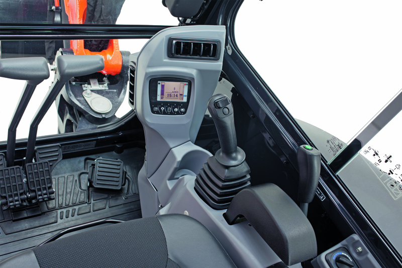 Auch in Sachen Bedienkomfort wurden zwei wichtige Änderungen an der Maschine durchgeführt: Eine größere und geräumigere Komfortkabine soll dem Fahrer jetzt mehr Beinfreiheit bieten und die um ca. 40 % breitere Kabinentür einen deutlich besseren Kabinenzugang ermöglichen. Die Kabine beinhaltet auch einen voll gefederten Komfortsitz.