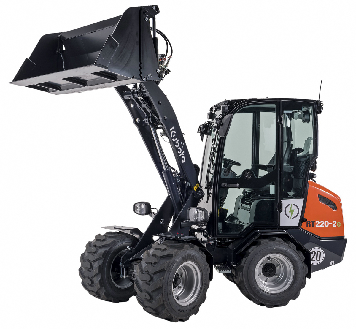 Die beiden neuen Kubota-Elektrolader RT210-2e und RT220-2e erweitern das bereits umfangreiche Angebot des Herstellers an knickgelenkten Maschinen des Segments. Der RT210-2e und der RT220-2e sind die ersten beiden elektrischen knickgelenkten Radlader von Kubota.