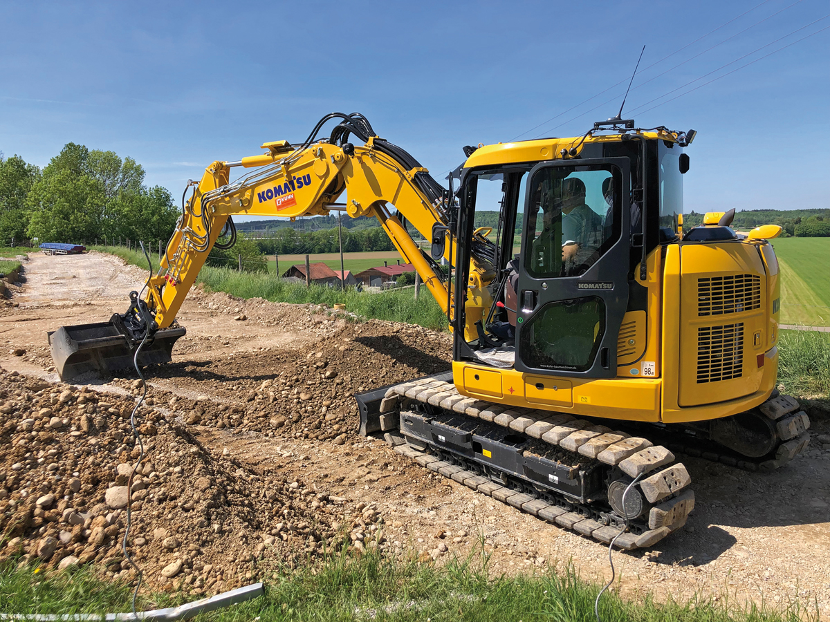 Neben den Leistungsdaten und dem sparsamen Spritverbrauch überzeugte Einsiedler u. a. auch die geräumige Fahrerkabine und der niedrige Geräuschpegel. Eingesetzt wird der Kompaktbagger rund 1 000 Betriebsstunden pro Jahr für alle Aufgaben im Straßen- und Kanalbau sowie in der Gartengestaltung. t