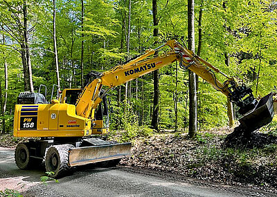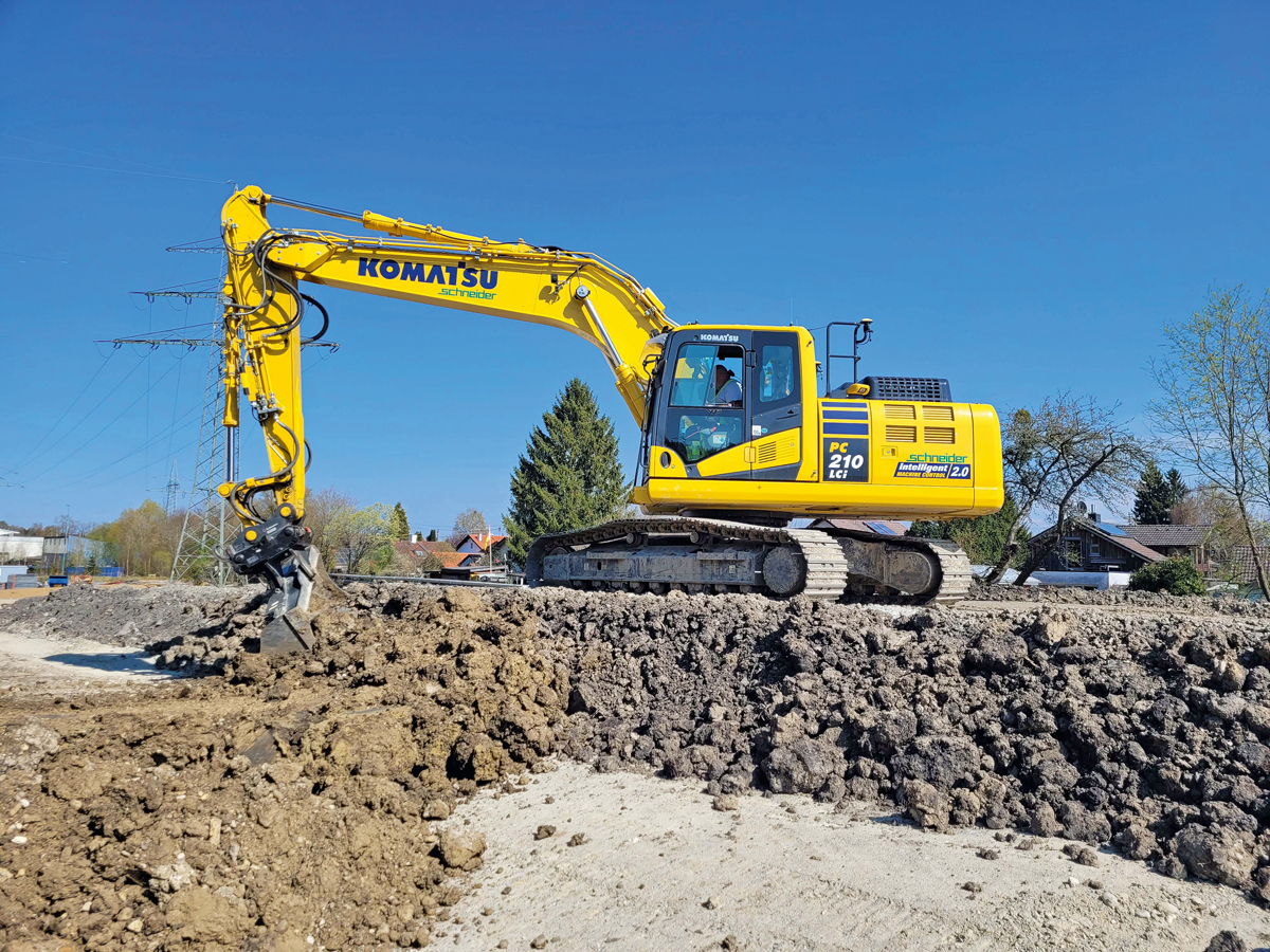 Heute ist der vielseitige Betrieb bekannt für eine gute Portion Pioniergeist, motivierte Mitarbeiter und für moderne Technologie im Fuhr- und Maschinenpark. Diese zeigt sich beispielsweise in der i-Technologie von Komatsu. So will der Hydraulikbagger PC210LCi-11 nicht nur einerseits neben der Erfüllung der geltenden Abgasnormen EU-Stufe V, durch eine gesteigerte Kraftstoffeffizienz und einen um bis zu 6 % gesenkten Kraftstoffverbrauch, höheren Fahrerkomfort und neue Sicherheitsausrüstung punkten, andererseits soll er eben auch von der ab Werk integrierten Komatsu-Maschinensteuerung profitieren. Durch diese technische Neuerung kann sich der Fahrer ganz auf die Einsatzeffizienz konzentrieren, während das System sicherstellt, dass nur so viel Material bewegt wird, wie geplant.