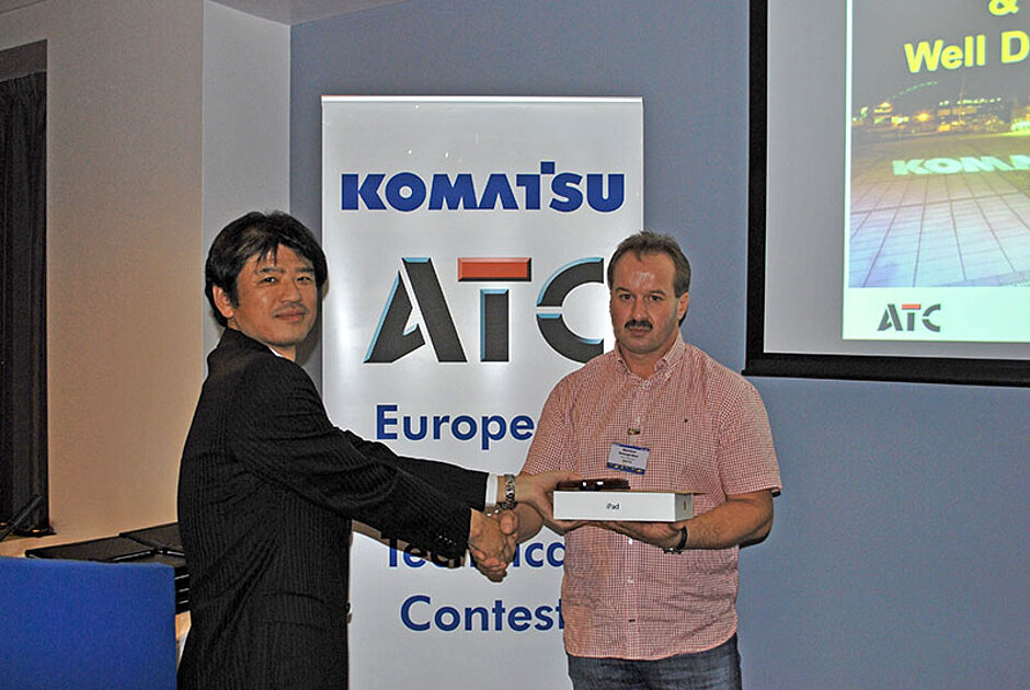 Beim ATC-Finale mussten sich alle Wettbewerber bei einem PC210 auf die Fehlersuche und an die Reparatur begeben. In der Kategorie »Fehlersuche« siegte Martin Schär aus der Schweiz. In der Kategorie »Reparatur« musste ein Maschinenteil ersetzt werden. Am besten bewältigte Jaroslav Zvara aus der Slowakei diese Aufgaben. Bei der »Serviceberatung« war ein PC180-8 zu bewerten. Hier warf Günther Griesgraber (Niederlassung Ebersberg) seine Erfahrung in die Waagschale und trug den Sieg für Kuhn Deutschland davon. Bei Kuhn wertet man die Erfolge als Bestätigung für das konsequente Bemühen um höchstmöglichen Standard bei den Serviceleistungen.