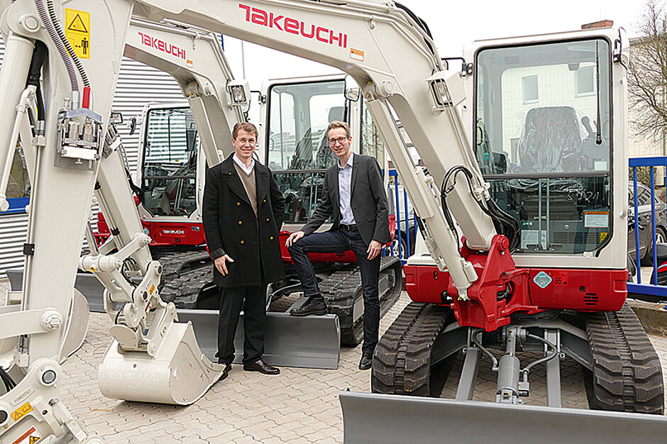 »Takeuchi-Kompaktbagger und -Raupen sind auch wegen ihrer sehr umfangreichen serienmäßigen Ausrüstung ein starkes Produkt«, sagt Lars Lang, Verkaufsleiter Erdbewegungsmaschinen bei König. So werden zum Beispiel im Mietpark die Takeuchi-Bagger mit maximaler Ausstattung wie Powertilt und dem Schnellkupplungssystem Taklock angeboten. »Damit werden die Bagger zu flexiblen Werkzeugträgern und sind für vielfältige Einsätze nutzbar. Auch deshalb haben wir die neue Produktlinie in unser Programm aufgenommen«, sagt Lang. »Der sehr gute Ruf, den die Takeuchi-Produkte genießen, passt zu unserem Gesamtkonzept. Wir stellen unseren Kunden rundum Maschinen und Geräte von guter Qualität zur Verfügung. Deshalb haben wir uns dafür entschieden, Takeuchi-Kompaktbagger, -Laderaupen und -Mini-Dumper in unser Programm aufzunehmen«, unterstreicht auch Pär Fasterling, Geschäftsführer der Kurt König Baumaschinen. Der Ursprung der Kurt König GmbH liegt im Verkauf von Werkzeugen, Baugeräten und Baustelleneinrichtungen. Auch heute gehört dieser Bereich nach wie vor, mit Verkauf in großen Baushops, zum Unternehmen. Darüber hinaus ist König mit Baumaschinen in unterschiedlichen Branchen in seinem Verkaufsgebiet vertreten. Darunter Hoch- und Tiefbau, Kommunen, GaLaBau, Gewinnung und Recycling sowie Industriebetriebe oder klassische Handwerksunternehmen.
