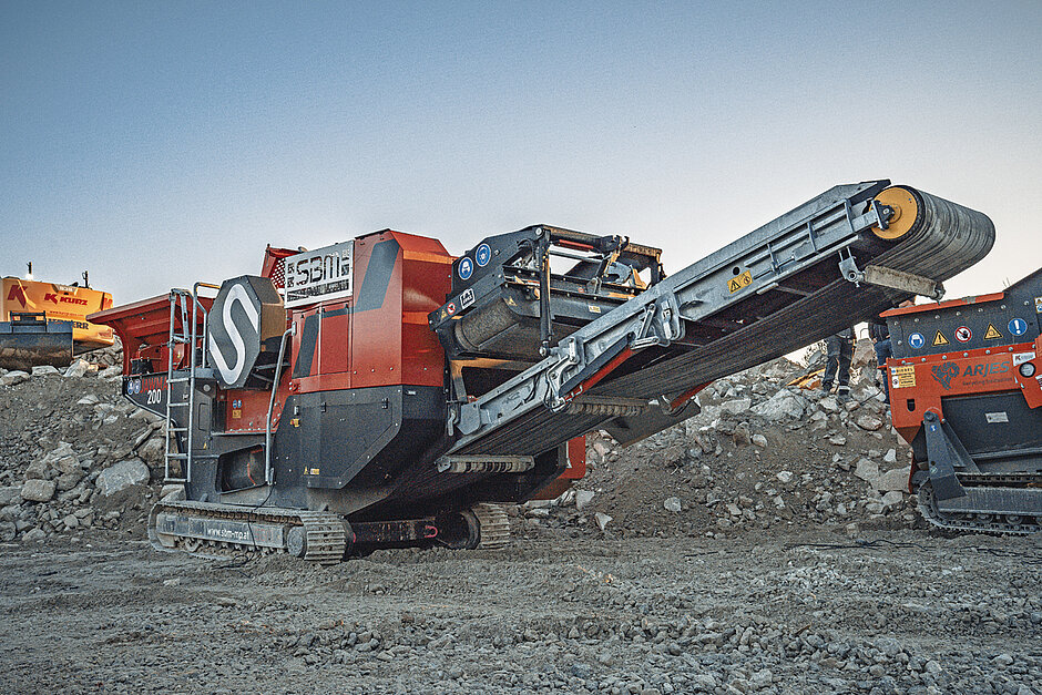 Eine Rinne unter dem Brecher, ein oben aufgebauter Motor, ein dieselelektrischer Antrieb, der längs konzipierte Elektromagnet, die Brechspaltüberwachung, ein schwenkbares Vorsiebband und drei Windsichter führt Kurz-Vertriebsleiter Harald Weber als einige Highlights der neuen SBM Remax 600 an (das bauMAGAZIN berichtete in Heft 10/22, Seite 176). »Mit dieser neuen Anlage schließen wir die Lücke zu den großen Recycling- und Steinbruchanlagen. Die Kundenresonanz war schon mal riesig«, so Weber.