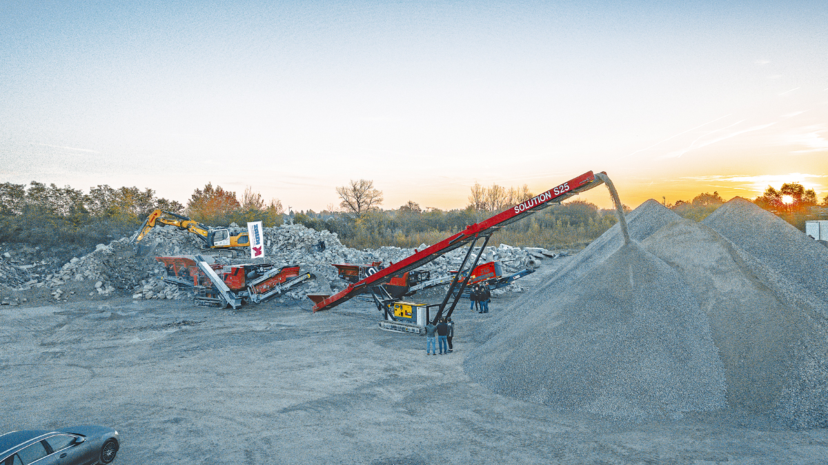 Jeder, der Interesse an Aufbereitungsanlagen im Einsatz hatte, konnte sich auf dem Gelände der Firma Obermaier ein Bild der Leistungsstärke der jüngsten Brecheranlagengeneration machen. Im Einsatz war u. a. eine 1300er-Remax-450-Prallmühle von SBM Mineral Processing mit Nachsieb und Windsichter zu sehen. Wie alle Anlagen des Herstellers ist diese diesel-elektrisch angetrieben. Ein hoher Wirkungsgrad und ein gleichzeitig geringer Dieselverbrauch sollen die Anlage besonders auszeichnen.