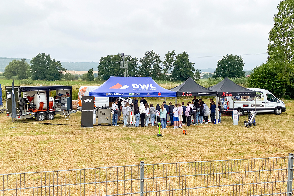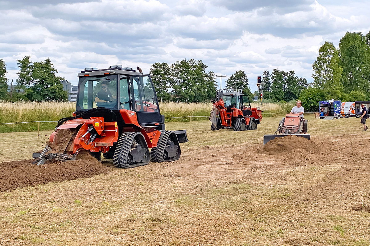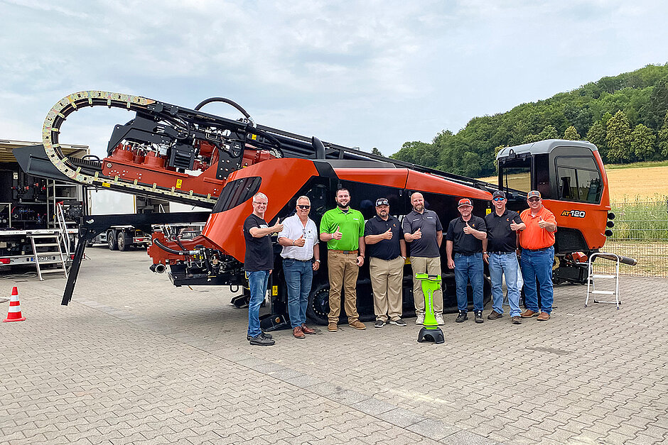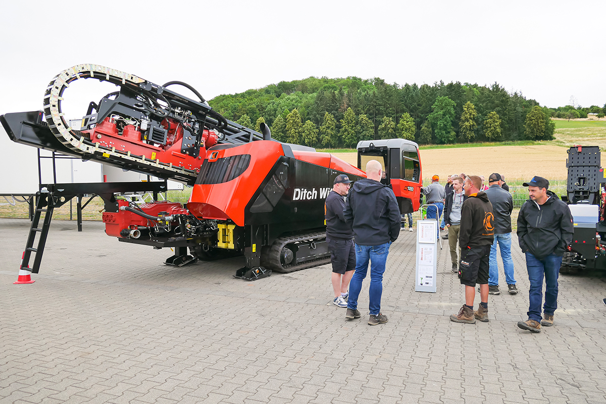 Highlight des L-Team Sommer-Events war die Präsentation der neuen AT120, der größten All-Terrain Horizontalbohranlage von Ditch Witch mit Doppelbohrgestänge. Sie verfügt über 534 kN Zug- und Schubkraft, 6 Meter lange Bohrgestänge, einen 62,5 m Biegeradius, eine 1.079 l On-board Mudpumpe, ist mit 79 dBA sehr leise und hat eine moderne, ausfahrbare Komfortkabine. Interessenten konnten sich zur AT120 ausführlich von den anwesenden Ditch Witch-Experten informieren lassen.