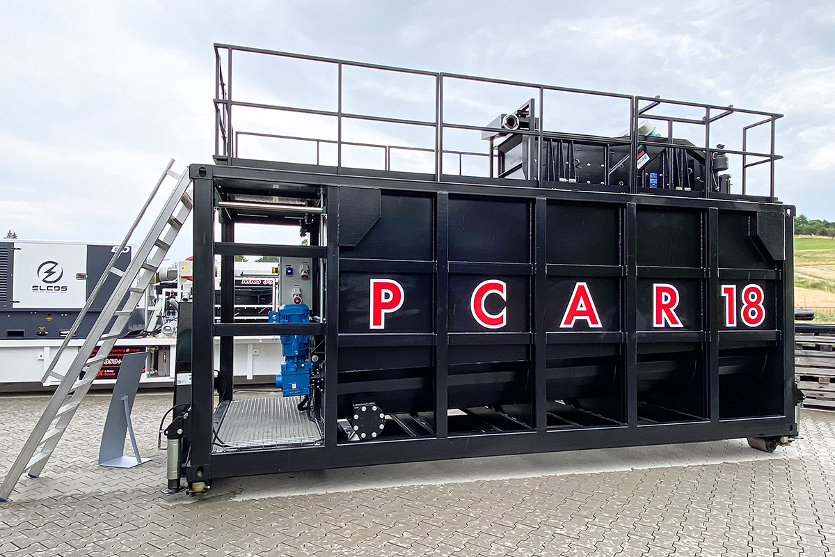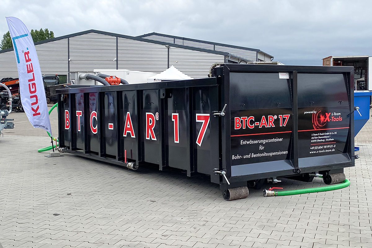 Eines von zwei weiteren Neuprodukten war der Puffercontainer PCAR18. Er ist dazu bestimmt, gebrauchte Bohrspülung teilzuentsanden. Ein integriertes Rührwerk verhindere dabei das Aussedimentieren des Restsandes. Die Doppeldeck Siebanlage auf dem Dach kann zum Transport in den Container heruntergelassen werden. Die zweite Neuvorstellung war ein Bohrtechnikcontainer für Bohr- und Betonitsuspensionen, der BTC-AR 17. Dieser Rüttel-EWC (Entwässerungscontainer) ist erhältlich als Abrollcontainer-Variante, eine Komplettlösung zur Entwässerung von Bohrschlamm-Suspension, Bentonitschlamm, Sand- und Kieswaschschlamm. Mit bis zu 17 m3 Füllvolumen und mittlerer Trennwand zur Erhöhung der Filter- und Entwässerungsfläche für die Trennung des Schlammes kann er diesen mit Hilfe von Flockmitteln in seine flüssigen und festen Bestandteile trennen. Ebenso ist dieser Rüttel-EWC als Absetzcontainer-Variante mit 10 m3 Füllvolumen erhältlich.