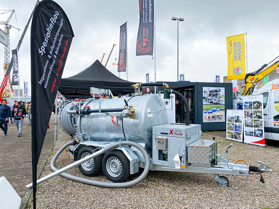 Das ausgestellte mobile Vakuumsystem M-VAC von ALTRO-Tec, ein mobiles VakuumSaugSystem mit 3,5 t-Fahrgestell, ist die richtige Lösung für jeden Anwendungsbereich. Es eignet sich zum Aufsaugen und Transport verschiedenster, nicht brennbarer Flüssigkeiten, wie Bentonit, Bohrspülung, Schlamm, Klärschlamm und vieles mehr ...