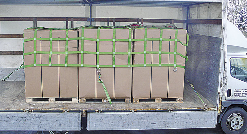 Gurtbandnetze können flexibel in verschiedenen Ladungssituationen angewendet werden. Durch die formschlüssige Komponente des Netzes wird das Transportgut geschont, da die Ladung im Vergleich zu anderen Sicherungslösungen nicht so stark niedergezurrt werden muss.